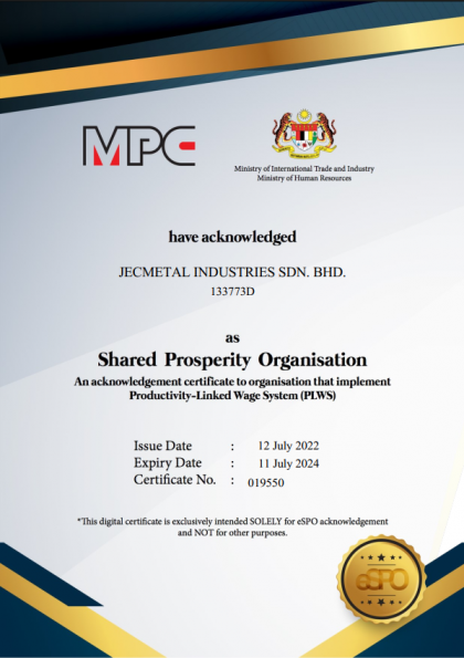 Jecmetal is committed to achieving a higher level of integration with customer by providing unique value added functions that will complement the growth and profitability of customers through focusing on VERSATILITY, FLEXIBILITY, RELIABILITY and other critical success factors of the customers.