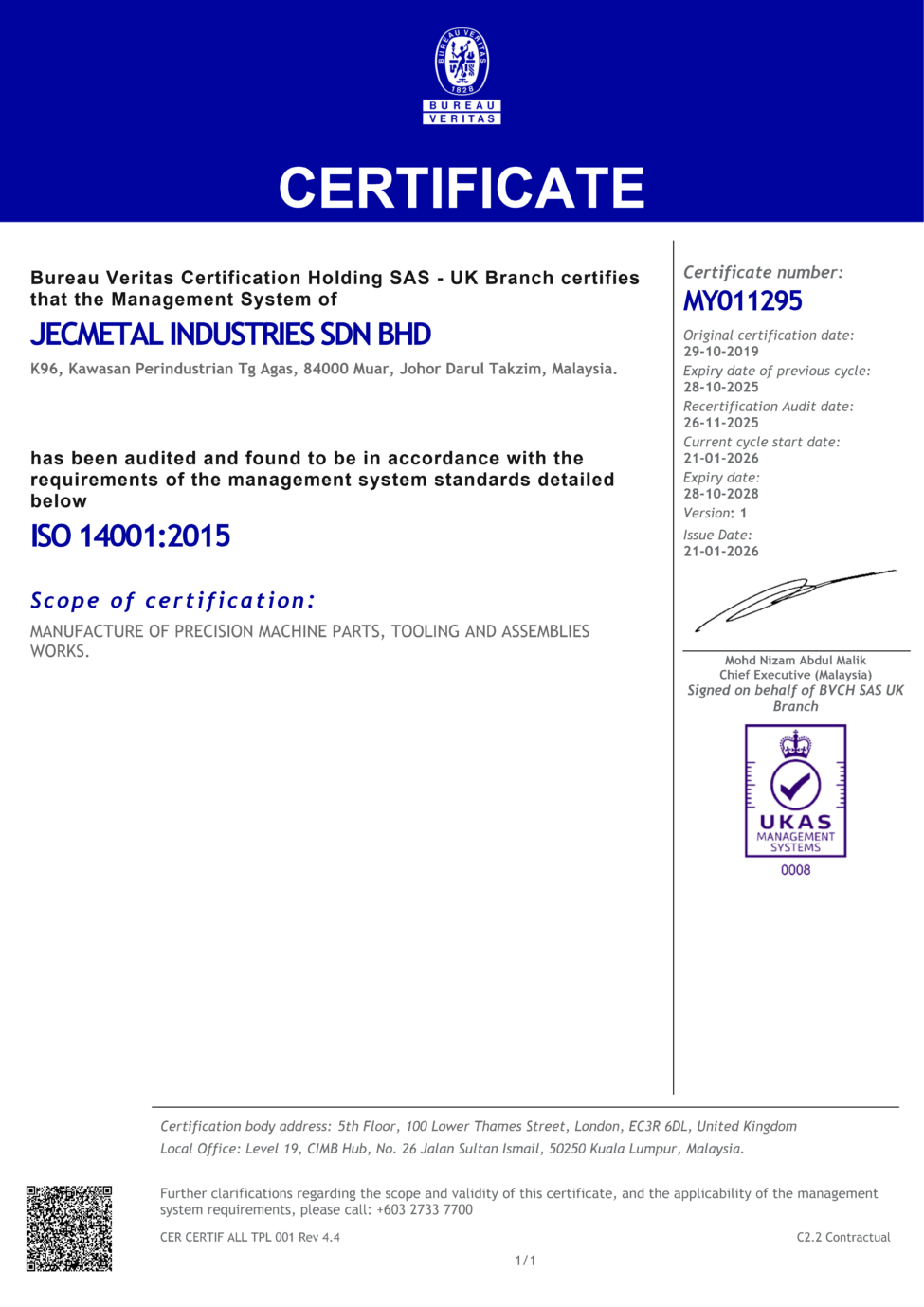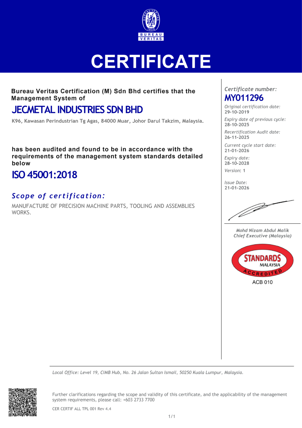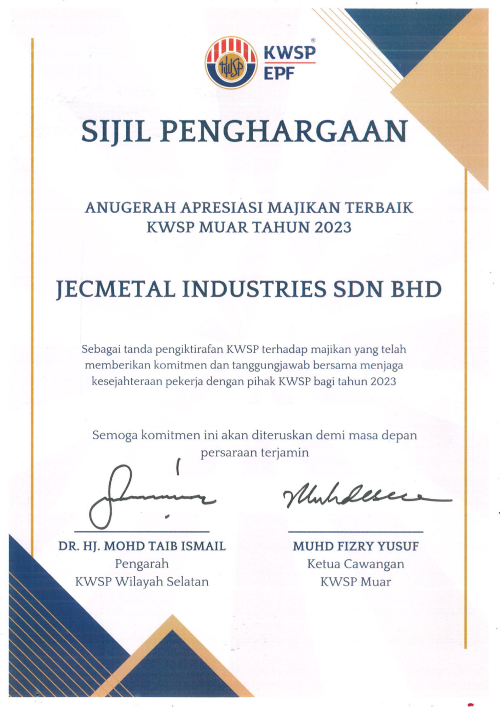 Jecmetal is committed to achieve a higher level of integration with customer by providing unique value added functions that will complement the growth and profitability of customers through focusing on VERSATILITY, FLEXIBILITY, RELIABILITY and other critical success factors of the customers.