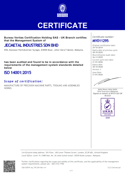 Jecmetal is committed to achieving a higher level of integration with customer by providing unique value added functions that will complement the growth and profitability of customers through focusing on VERSATILITY, FLEXIBILITY, RELIABILITY and other critical success factors of the customers.
